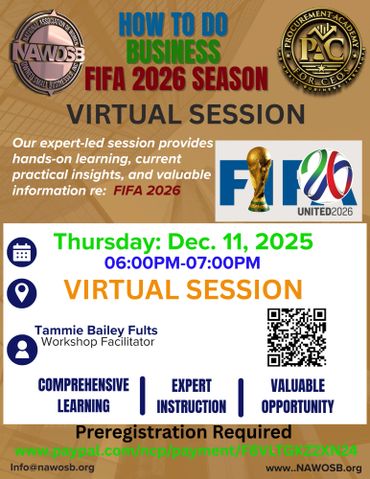 Procurement Academy for CEOs (PAC) program created in 2021 is a national educational, training Program created through National Association of Women Owned Small Businesses, Inc. (NAWOSB) to assist, educate, support and train disadvantaged, minority businesses how to navigate the various agencies and opportunities in all government sectors of procurement and respond to the agencies RFPs, RFQs, RFIs, ITBs and IFBs.