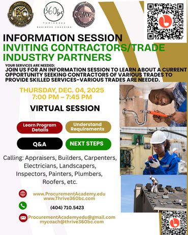 You're invited to our FREE Virtual Information Session to learn about an upcoming Request. We are seeking Providers of various services: Plumbling, Remodelers, Flooring, Electrical, etc.